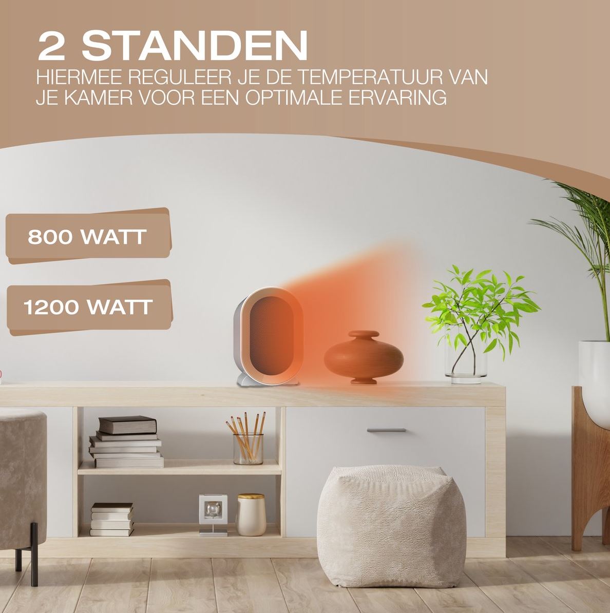 De mini draagbare elektrische infrarood kachel is heel gemakkelijk overal mee naar toe te nemen, dankzij de lichte en compacte ontwerp met gereduceerde afmetingen. Ideaal om in de buurt te hebben om handen of voeten te verwarmen en een aangename, troostende warmte te geven op koude winterdagen. Hij neemt weinig plaats in en kan op de tafel, op de vloer, op het werkbureau, enz. gezet worden. Deze draagbare mini-verwarming is de perfecte metgezel bij het lezen, werken, studeren, tv kijken, enz. Bovendien heeft hij een snelle opwarming en 2 warmtestanden (800W en 1200W) een laag stroomverbruik.